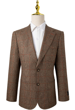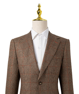 Brown and Rust Check Suit- Giovanni Bresciani Slim Fit Suit- Patch Pockets