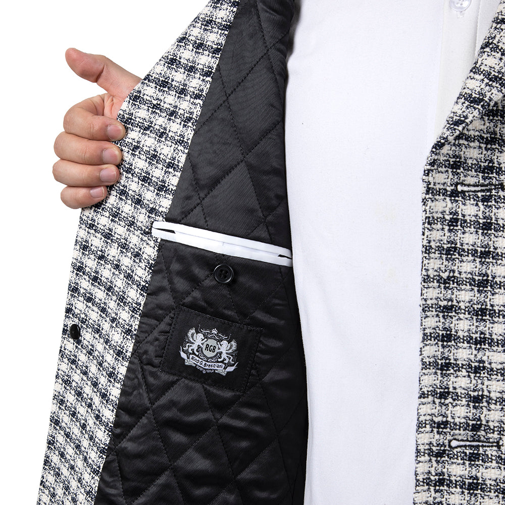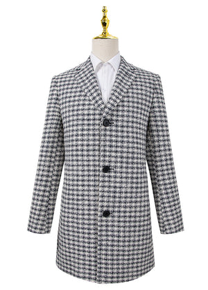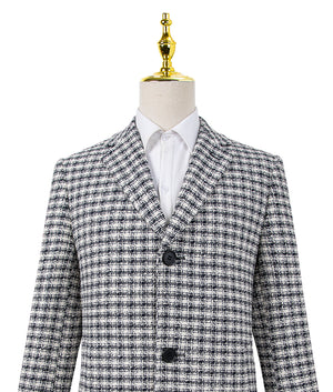 Black And White Vintage Pattern RGB Wool Overcoat