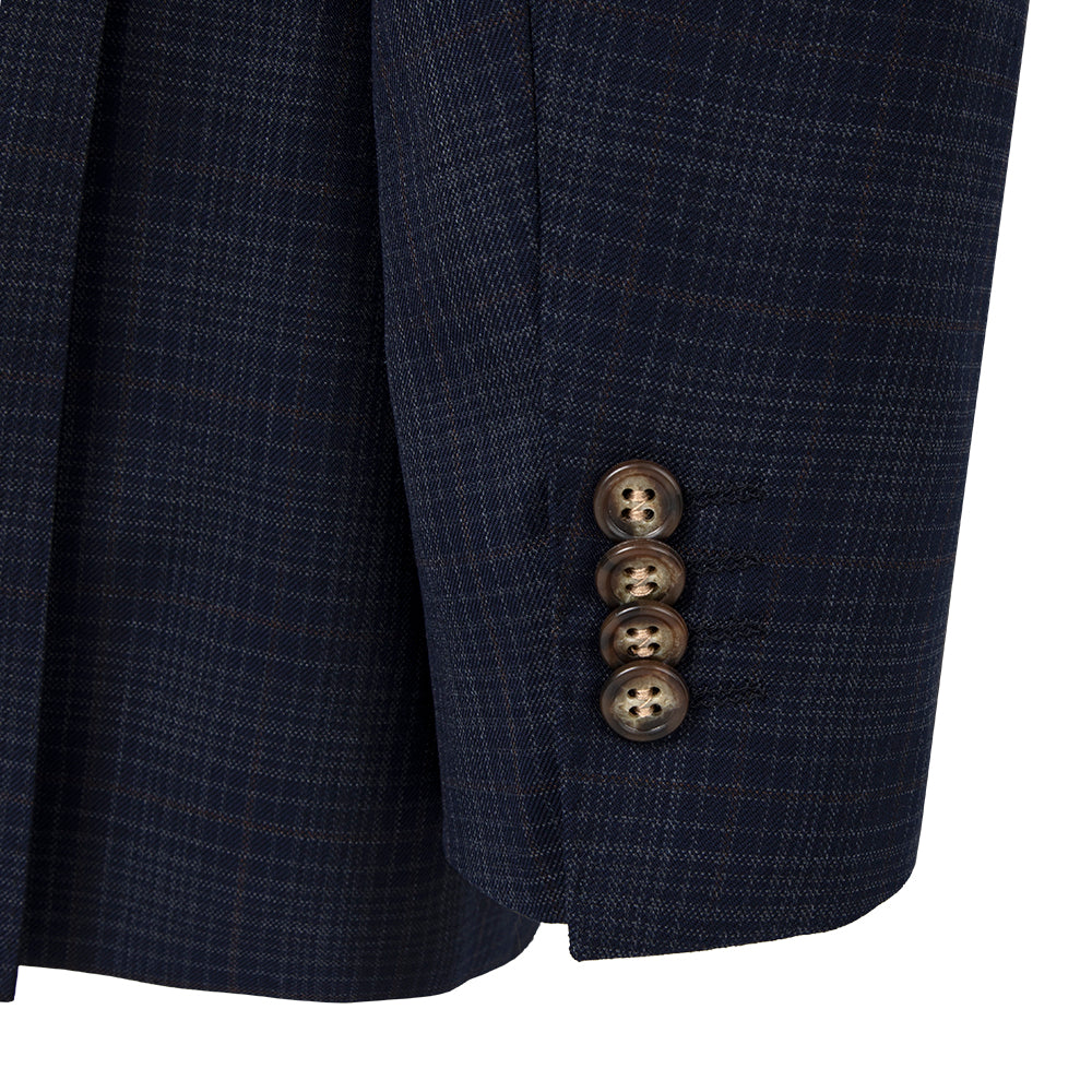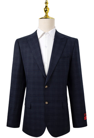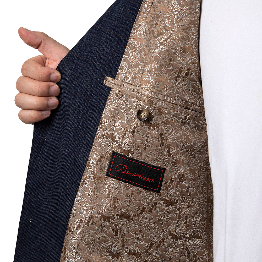 Navy Fashion Check Suit Modern Fit- Bresciani Suit
