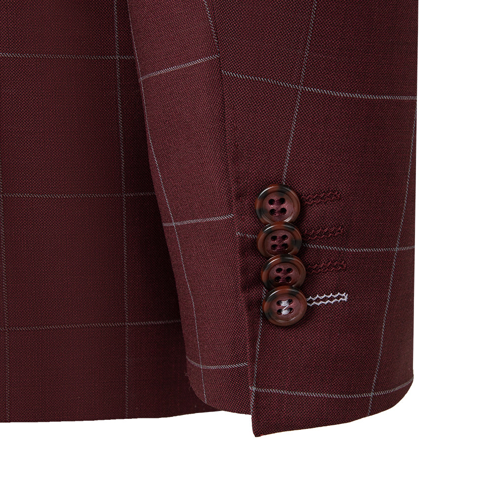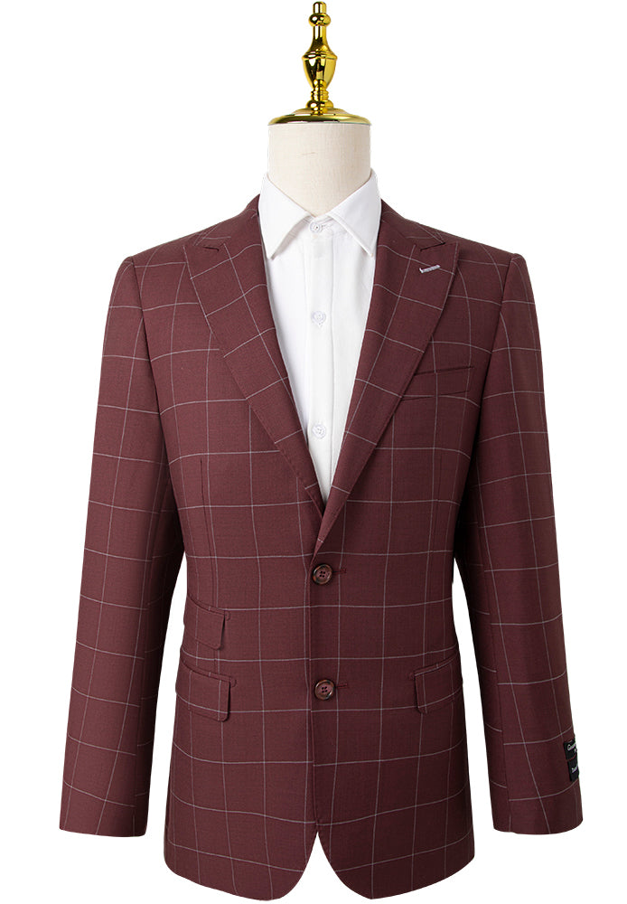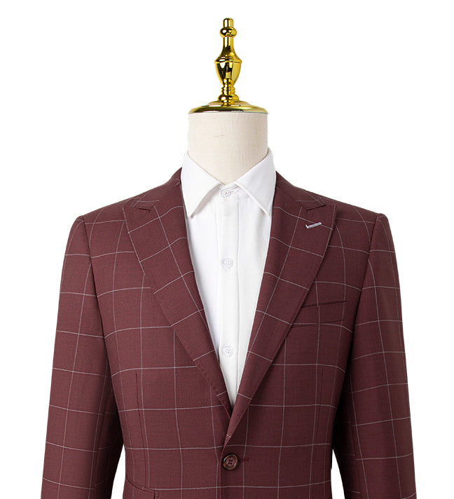 Maroon Windowpane Suit Suit- Giovanni Bresciani Slim Fit Suit