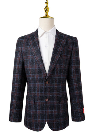 Navy and Burgundy Check VBC Fabric Sports Jacket- Giovanni Bresciani Sport Jacket